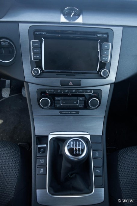Spațiul interior este excelent, în special pentru ocupanții locurilor din spate care au suficient spațiu indiferent de dimensiunile lor ori ale ocupanților locurilor din față – nimic nou în comparație cu generația anterioară. Se resimte o îmbunătățire a ergonomiei și o optimizarea a detaliilor în ceea ce privește calitatea finisărilor, ceea ce se traduce printr-o atmosferă mult mai elegantă, cu accente premium. Modelul testat de noi, nivel de echipare Comfortline, te răsfață cu aproape toate echipamentele necesare unei călătorii reconfortante: aer condiționat Climatic, Radio CD MP3 și AUX cu 8 incinte acustice, geamuri electrice față/spate, oglinzi laterale reglabile electric, cu încălzire și sistem antiorbire pe partea șoferului – sistem regăsit și la oglinda interioară, închidere centralizată cu telecomandă și funcție de pornire “Press & Drive” pe planșa de bord, frână de staționare electronică variabilă cu funcție Auto Hold, sistem Start-Stop, control automat al luminilor de drum, computer de bord, etc. O îmbunătățire foarte practică adusă portbagajului este deschiderea automată a acestuia prin simpla trecere a piciorului pe sub bara spate (cu condiția să ai în buzunar cheia mașinii) și posibilitatea rabatării banchetei asimetrice prin simpla acţionare a două manete, una pentru fiecare segment al acesteia. Sistemul este foarte util în momentul în care te întorci la mașină ca un babuin cu o grămadă de plase de cumpărături și a treia mână este deja ocupată cu tava cu prăjituri. Pe lângă dotările de bază, dintre care am enumerat o parte, modelul testat avea câteva dotări opționale care merită luate în calcul, printre care (prețurile includ TVA): aer condiționat Climatronic automat bizonal 422 euro, faruri de ceață cu funcție de viraj 196 euro, volan multifuncțional îmbrăcat în piele 190 euro sau tempomat 370 euro – foarte util pentru sporirea confortului în cadrul deplasărilor pe distanţe lungi (în special pe autostradă).