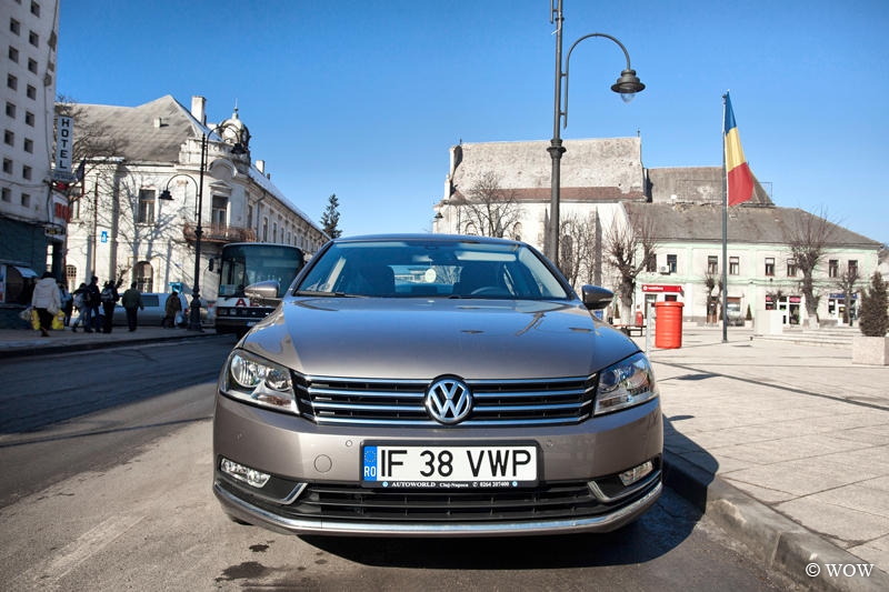 Și dacă tot veni vorba de autostradă, să povestim puțin și despre dinamica noului Passat. Per ansamplu nu te surpinde cu nimic special deoarece îți întâmpină toate așteptările. Motorizarea testată de noi, 2.0 TDI asociată cu o cutie de viteze manuală cu 6 trepte, asigură un caracter foarte dinamic, mașina garantând o dinamică excelentă în condițiile unui consum mixt excelent de doar 5 litri motorină. Și cum tentația de ai testa limitele a fost suficient de mare, primul lucru pe care l-am făcut a fost să dăm o fugă până la Turda, pe autostradă. Absorbiți fiind de sistemele multimedia de la bord, mai exact încercând să conectăm telefonul prin Bluetooth, am uitat să mai schimbăm treptele de viteză. Astfel ne-am trezit la o viteză de 160 km/h în treapta a 4-a la doar 4.000 rpm – asta în condițiile în care mai aveam încă 2 trepte „de rezervă”. Partea amuzantă este că la finalul testului am aflat că modelul testat nu era dotat cu această funcție – important este că suntem perseverenți când vine vorba de gadget-uri. Cu alte cuvinte, agregatul diesel de 140 CP îi vine ca o mănușă noului Passat– nu degeaba este cel mai răspândit motor diesel în cadrul concernului VW. Dinamică excelentă și sisteme de siguranță pe măsură: airbag-uri șofer/pasager, aibag-uri cap față/spate, inclusiv airbag-uri laterale față, ESP, ABS, ASR (control al tracțiunii), EDL (diferențial blocabil electronic), detector de oboseală etc. Modelul testat, Comfortline 2.0 TDI, are un preț de bază de 23.870 euro, cu TVA, un preț foarte bun dacă luăm în calcul nivelul de echipare foarte bogat și motorizarea de excepție.