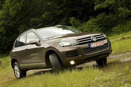 VW a dorit să scadă consumul de combustibil pentru noul model. Cum au reuşit să facă acest lucru? Printre altele au reuşit să reducă greutatea caroseriei cu aproximativ 200 de kg. La partea de consum însă – modelul se laudă cu unul mixt de 7.4l – noi am reuşit să scoatem ceva mai mult, având în vedere că am solicitat maşina pentru a-i testa abilităţile. Şi pentru că veni vorba de abilităţile noului Touareg am ales un traseu interesant, dotat cu unele „denivelări naturale” mai precis Cluj-Gilău-Lacul Tarniţa până spre „coada lacului”.