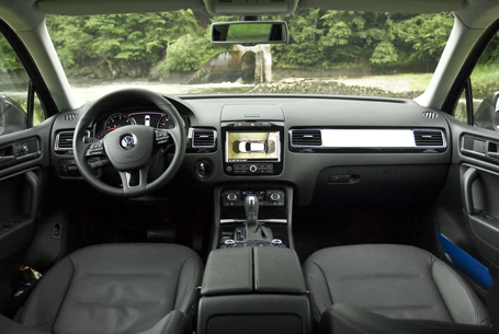 Interiorul noului Touareg este la fel de impresionant şi te invită să savurezi experienţa şi totodată plăcerea de a conduce acest vehicul. Spaţiul din interior este realmente remarcabil şi nu te vei simţi presat sau incomod, ceea ce este foarte important chiar şi atunci când te afli într-o maşină de asemenea dimensiuni. Materialele de cea mai bună calitate emană conservatorismul VW, dar în acelaşi timp şi eleganţa cu care ne-am obişnuit din partea producătorului german. Unul dintre sistemele inovatoare care ne-au atras atenţia este „Area View”. Acesta desemnează sistemul de reprezentare a vecinătăţii imediate din jurul noului Touareg – atât din părţile laterale cât şi din spate – imaginile fiind redate, datorită senzorilor, pe ecranul lcd amplasat în consola centrală. Display-ul din bord, situat între ceasuri, îţi indică toate datele importante în ceea ce priveşte maşina – de la navigaţie până la consum etc. La partea de media, remarcăm sistemul bluetooth, care funcţionează impecabil, depinde doar cât de mult îţi place să-l foloseşti sau cât de mult ţii ca orice conversaţie la telefon să rămână privată. Sonorizarea ambientală este foarte bună, se remarcă multiplele sisteme precum MEDIA –IN, cu cablu adaptor pentru i-Pod, sau Media In cu cablu adaptor usb (se renunţă la conectorul AUX -IN din dotarea standard). Pe lângă acestea sunt o sumedenie de opţiuni care îţi vor face cu ochiul, dar care îţi vor urca şi preţul considerabil dacă decizi să-ţi faci toate mofturile.