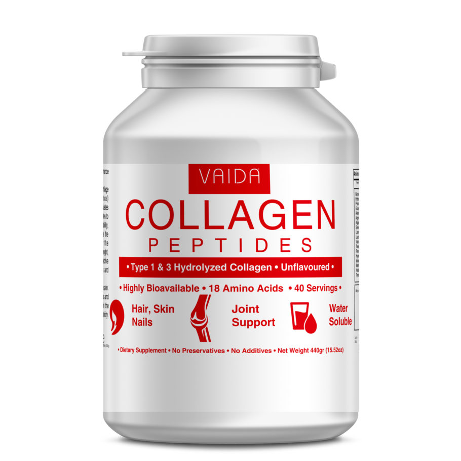 COLLAGEN PEPTIDES powder, marca Vaida, este un supliment alimentar ce-ți oferă suportul nutrițional necesar pentru structurile osoase în timpul îmbătrânirii. Acesta conține cel mai important tip de colagen ce ajută la întărirea oaselor. Collagen peptides se găsește sub formă de pudră, în varianta de 400 mg. Se administrează o lingură de pudră de colagen zilnic, dizolvată într-un pahar de apă sau suc de portocale, iar pentru absorbție maximă, este recomandat să se administreze pe stomacul gol.
