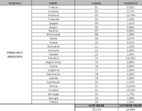 Televiziunea italiană RAI a dezvăluit clasamentul realizat pe baza voturilor publicului, România clasându-se pe locul 1 în preferințele telespectatorilor. Cu toate acestea, oficial, din partea Italiei a fost acordat un singur punct și nu 12, așa cum mulți se așteptau.