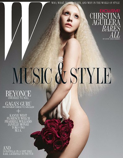 Christina Aguilera şi-a dezvelit trupul pentru revista W. Frumoasa blondă a pozat pentru Daniele Duella & Iango Henzi, fiind pregătită pentru acest shooting de către stilista Giovanna Battaglia. Frumoasa blondă a dorit să păstreze totuşi o urmă de mister şi nu şi-a arătat părţile intime pe care le-a acoperit cu o eşarfă şi un superb buchet de trandafiri roşii.