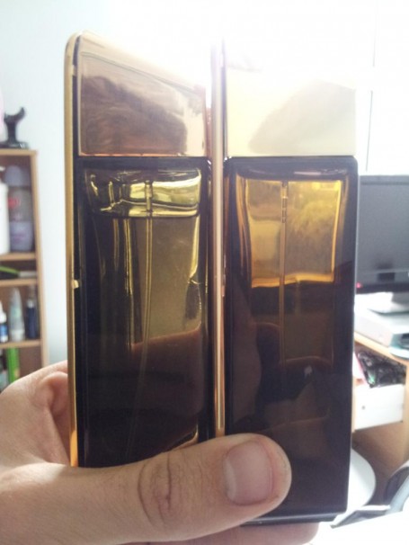 Partea frontală are următoarele elemente, diferența clară de culoare, originalul e mai auriu iar elementele sunt mult mai clare la original. Deși e o imitație foarte bună originalul e cel din dreapta.