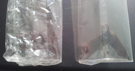 Celofanul: celofanul folosit la original nu se șifonează și e mai gros, iar porțiunea pe care se suprapune e mai mică la original.