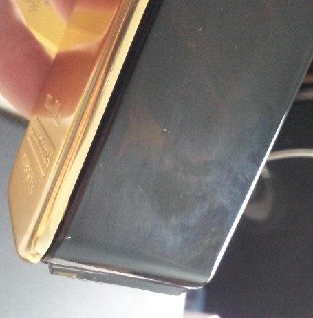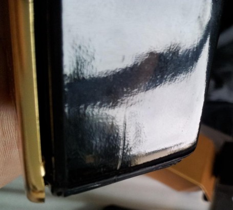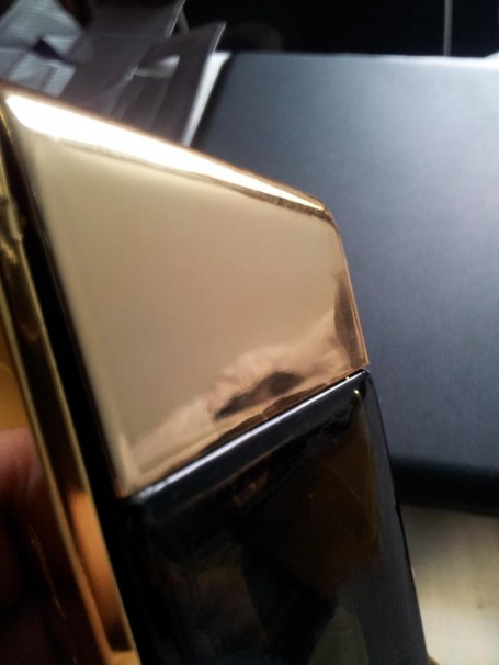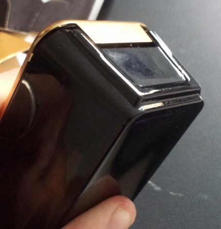 Lateralul falsului are defecte unde plasticul întâlnește sticla.