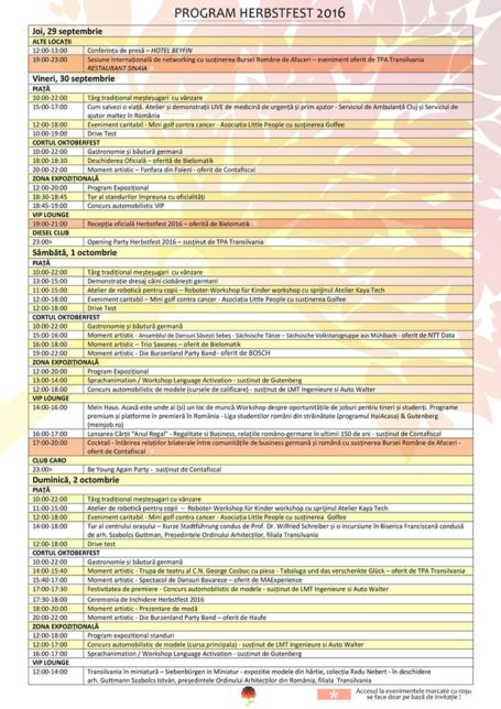 Cea de-a cincea ediție a deja tradiționalului Festival de Toamnă al Economiei Germane-Herbstfest 2016 se va desfășura pe perioada 29 septembrie-2 octombrie, în Piața Unirii din Cluj-Napoca.