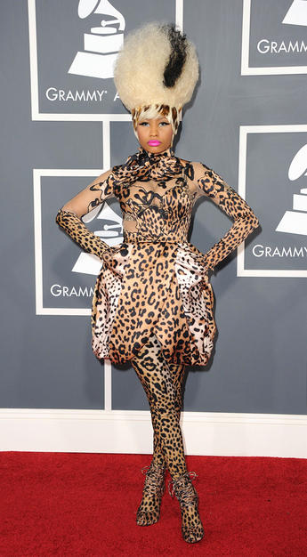 Deși este considerată uneori o imitatoare a lui Lady Gaga, aceasta ține să facă senzație, sau cel puțin asta își dorește. Spre deosebire totuși de Gaga, Minaj preferă culorile tari sau printurile animal, precum această capodoperă Givenchy.