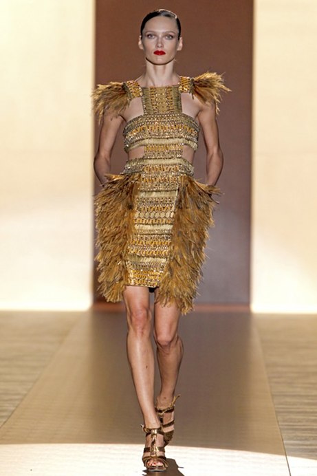 În contrast cu print-urile fructate se observă o revenire la era franjurilor. Rochii croşetate sau cele din ţesături fine primesc o doză sănătoasă de franjuri şi pene.