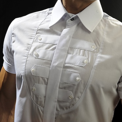Eleganta cămaşă, care poate fi purtată atât cu o pereche de pantaloni de stofă cât şi la jeansi, are preţul de 229 de lei şi poate fi comandată direct de pe internet respectiv din magazinul on-line al designerului cbstore.eu.