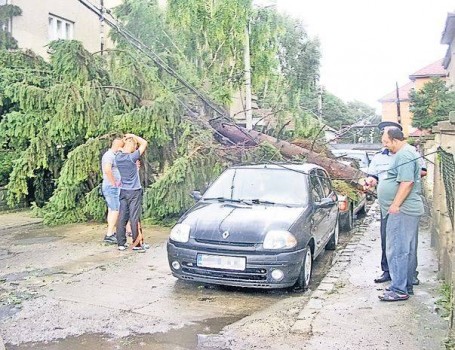 Clujul a fost cel mai afectat oraş în urma furtunii de ieri. Cel puţin 50 de copaci au fost scoşi cu rădăcină cu tot, acoperişurile mai multor clădiri au fost pur şi simplu smulse mai multe maşini au fost grav avariate, iar autorităţile evaluează şi la această oră pagubele, încercând să repare imaginea unui oraş cu copaci rupţi pe jumătate.