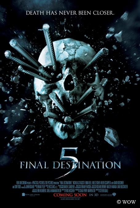 Final Destination 5 continuă practic ideea filmelor anterioare. Când „Moartea” este dezlănţuită din nou din cauza unui bărbat care îşi va salva colegii, urmând un şir lung de evenimente prin care cei implicaţi vor încerca din răsputeri să înfrunte planurile celei ce a venit să îi ia. Dacă vor reuşi să păcălească „Moartea” rămâne de văzut. Filmul are premiera pe ecranele din România în 2 septembrie, iar în rolurile principale îi veţi vedea pe Emma Bell, Arlen Escarpeta şi Nicholas D’Agnosto.